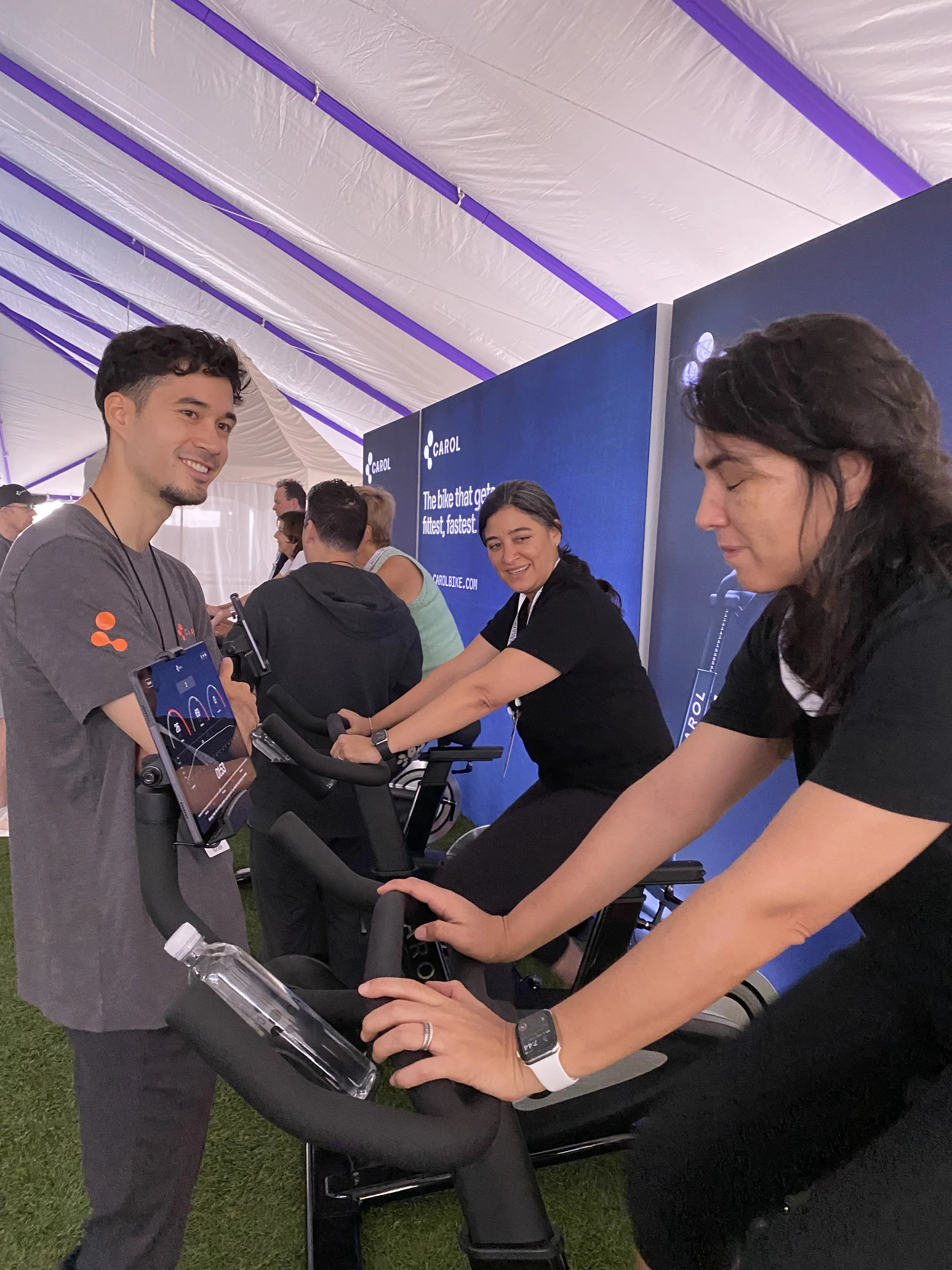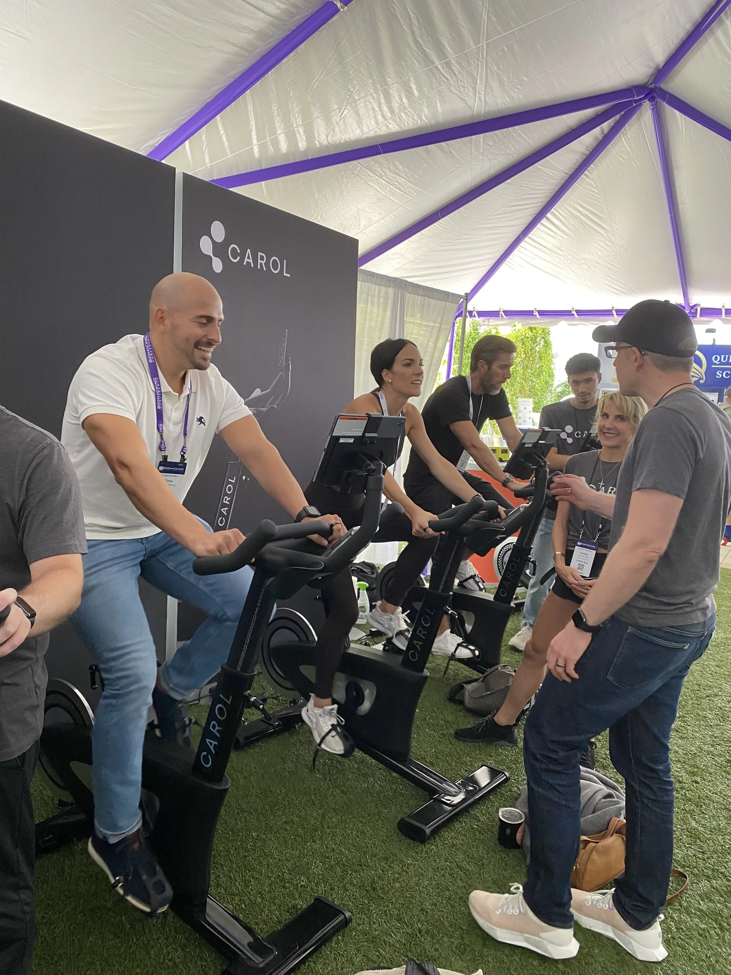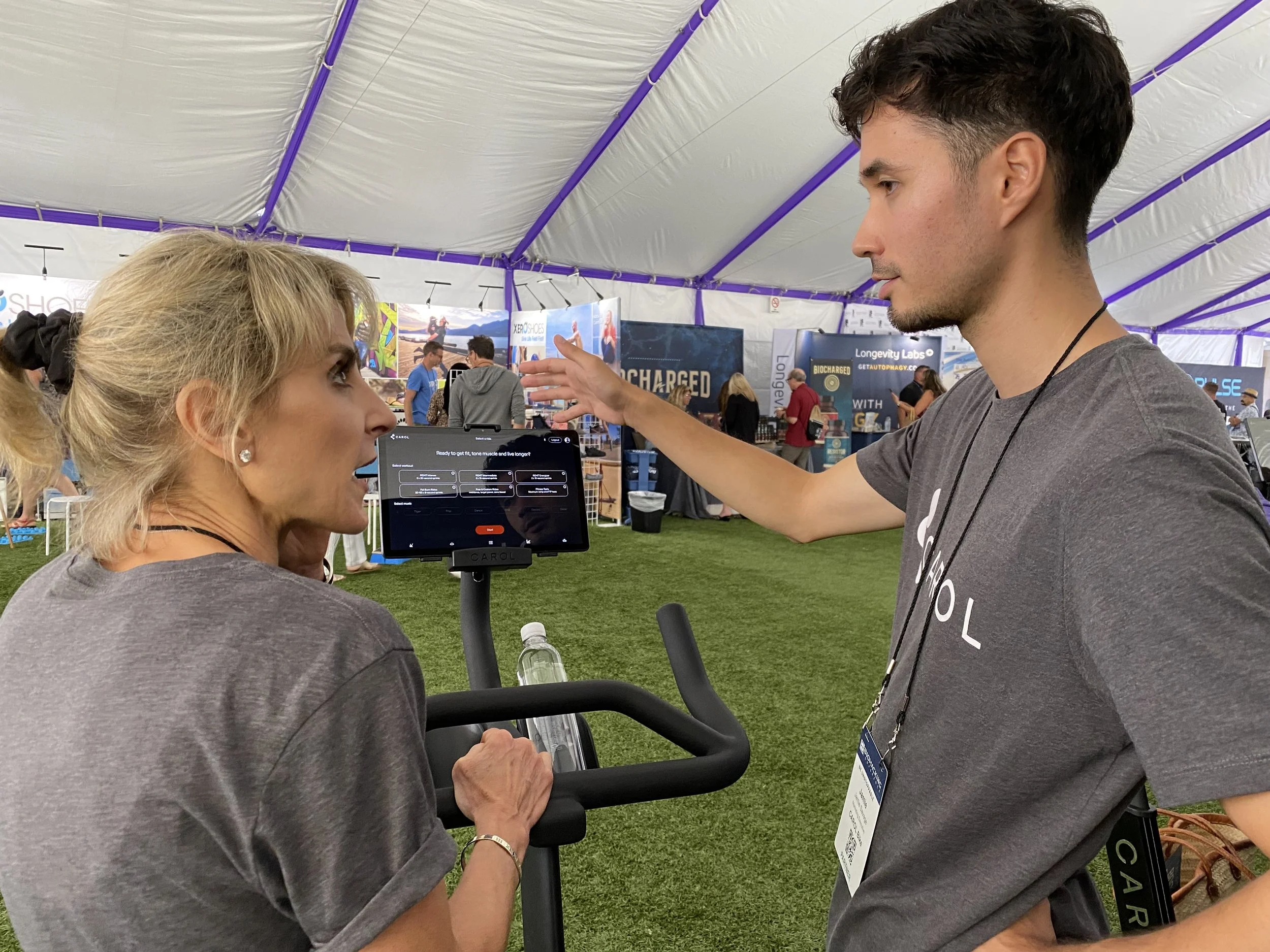 To grab tradeshow attendees’ attention on an expo floor is always challenging. At the Biohacking Conference where every type of biohacking equipment (including cold plunges, hyperbaric chambers, and potions) are vying for attention, it can be extra challenging. Also, with few U.S.-based staff members, Carol Bike needed to staff their booth with social media influencers and existing Carol Bike clients. The need for this support team to provide correct and consistent messaging, that was on-brand, was critical.